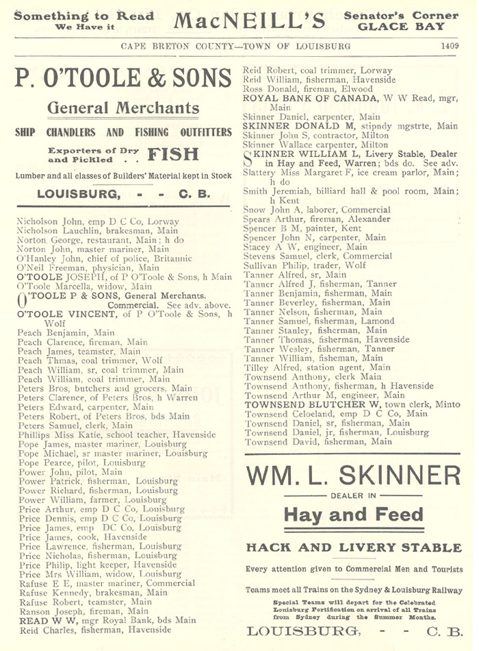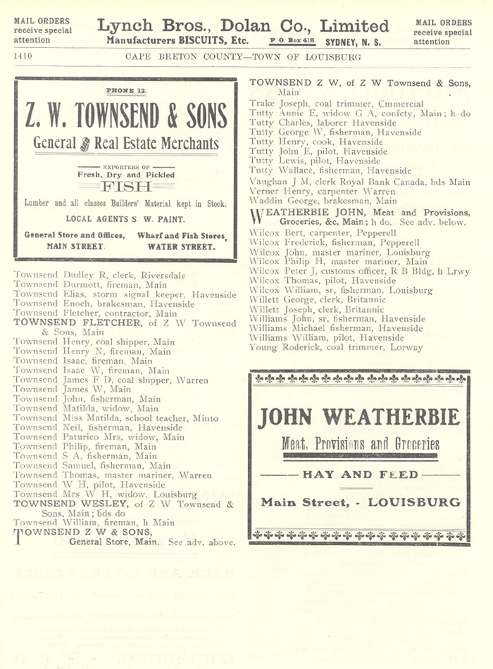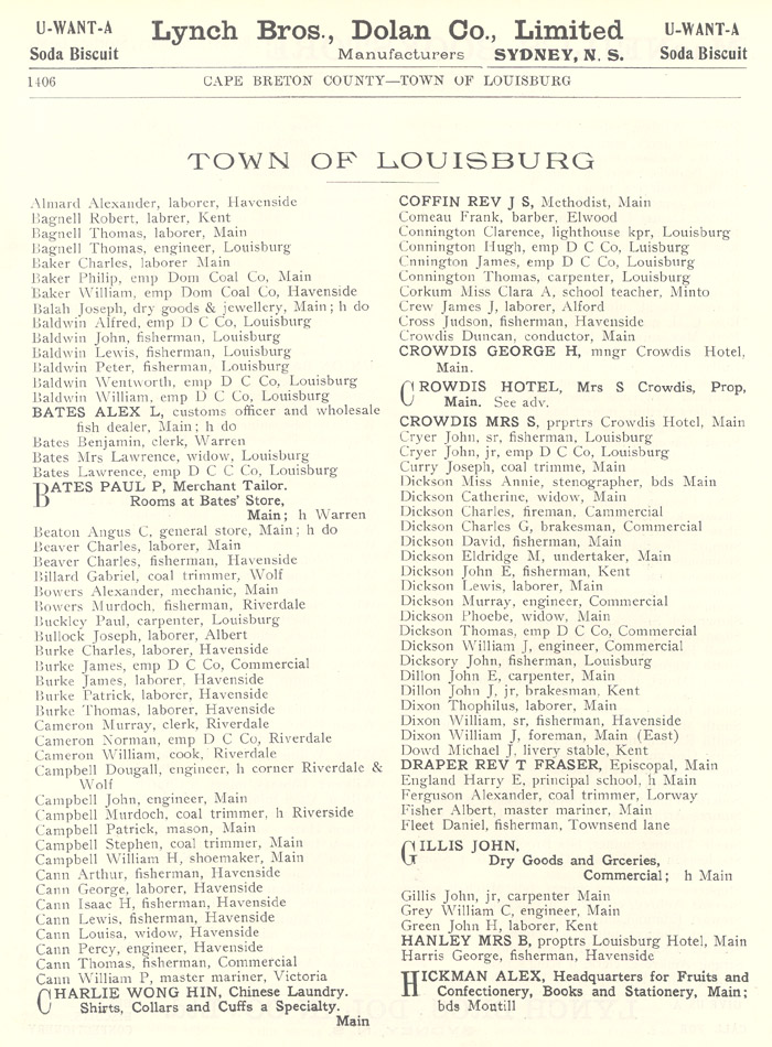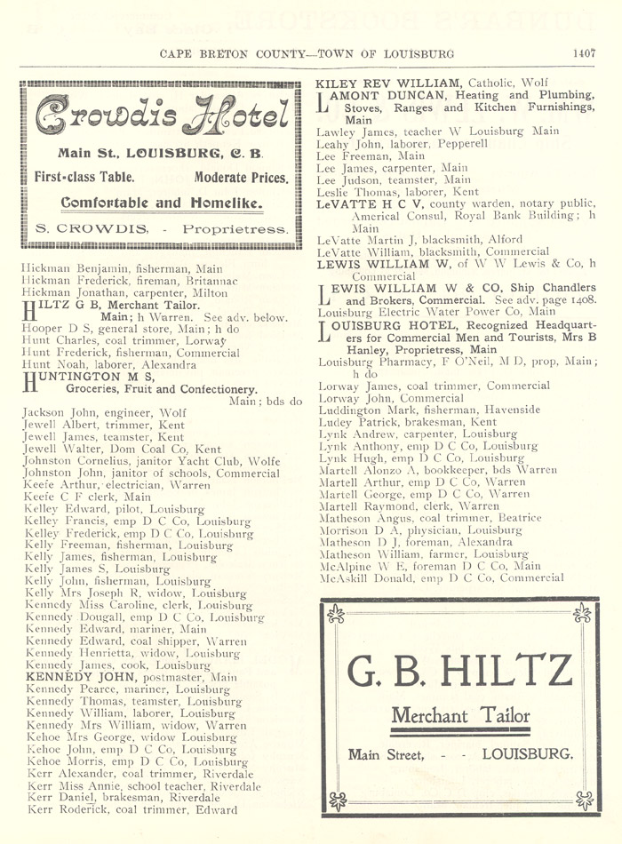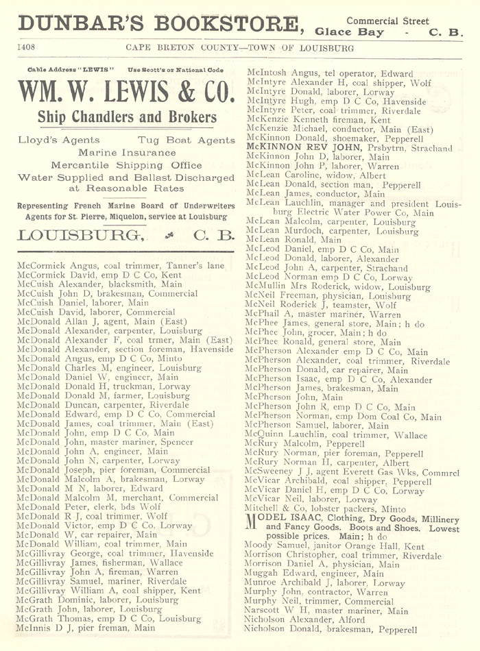 1907-1908 - McAlpine's Nova Scotia Directory, 1907-08, Cape Breton County - Town of Louisbourg