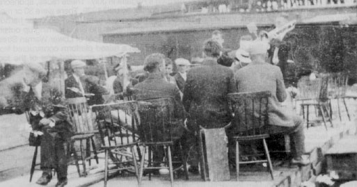The next time the Band played was for the Fishermen's Regatta in July. These races, sponsored by the Fishermen's Union, were first run in 1932 and continued until 1939. There were 30 or more boats entered in several divisions running a course from the Government Wharf down the harbour towards the Fortress and back again.17 Harold Wilson remembers the Band forming up outside the Town Hall and parading along the street to the waterfront at the foot of Lower Warren Street. The photographs taken that day show the Band seated on a raised platform constructed from swordfish boxes. Wilson remembers that the bandmembers also operated one of the food concession booths. Wesley Townsend directed the Band though, because of his illness, he directed while sitting on a chair.18