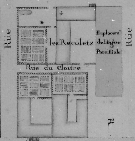 (1) Rue du Cloître existed to the south of Lot C but, without a parish church on Lot D, there was no active Rue De L'Eglise or Place De L'Eglise (Lot E)