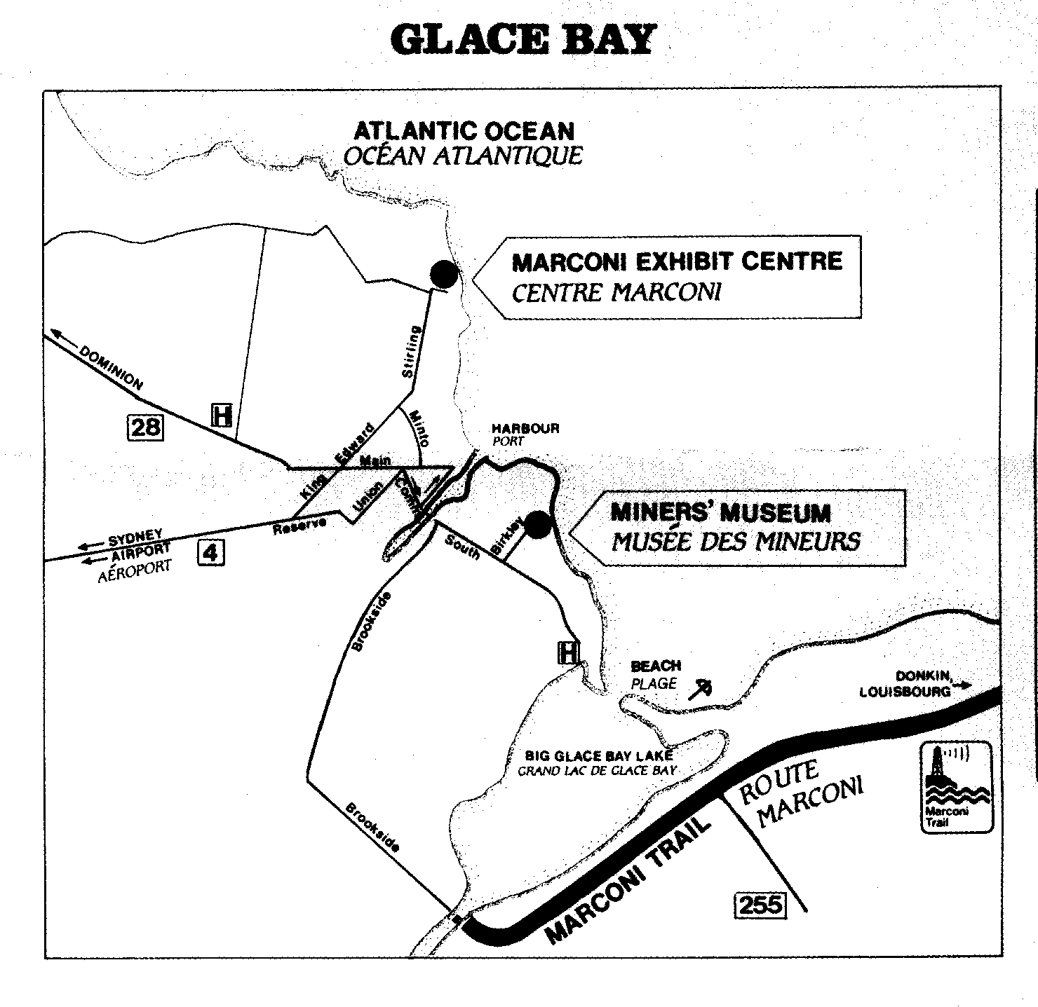 Now the great stations are just a memory, but this milestone in the history of communications is commemorated by the Marconi Trail coastal highway that links the three Marconi station sites, and by the Marconi National Historic Site at Table Head, operated by the Canadian Parks Service. Exhibits in the display centre at Table Head depict the early work of Marconi leading up to his trans-Atlantic success, and include a model of the station as it appeared In 1902.