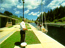 Les deux extrémités du canal sont soumises à l'action des marées et il peut se produire, entre les lacs et l'océan, des écarts de niveau allant jusqu'à 1.4m. C'est pourquoi chacune des deux entrées est munie de portes d'écluse doubles. L'écluse mesure 91.44m de long sur 14.45m de large et peut accueillir des navires ayant un tirant d'eau de 4.88m.