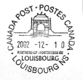 There is a new cancellation stamp being used at the Louisbourg Post Office. It features a drawing of the Frederick Gate with the words of "Fortress of/Forteresse de Louisbourg.