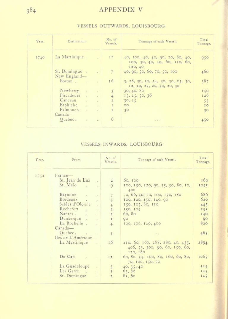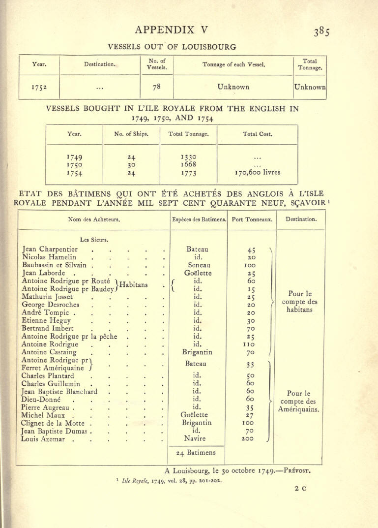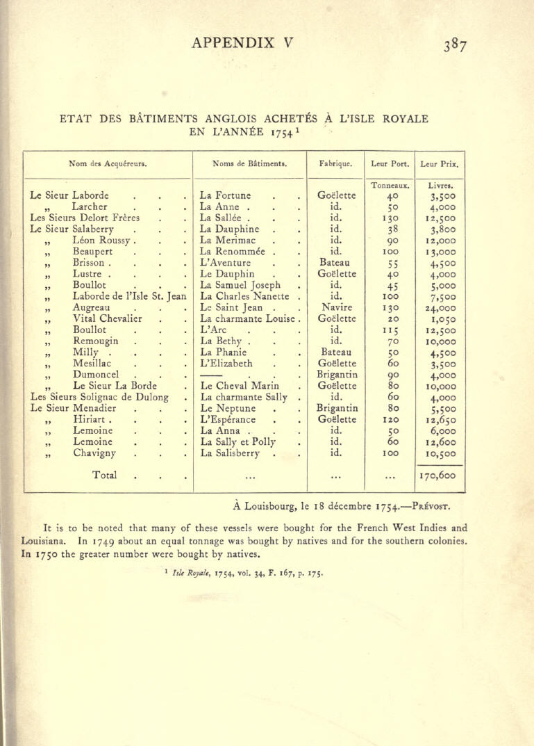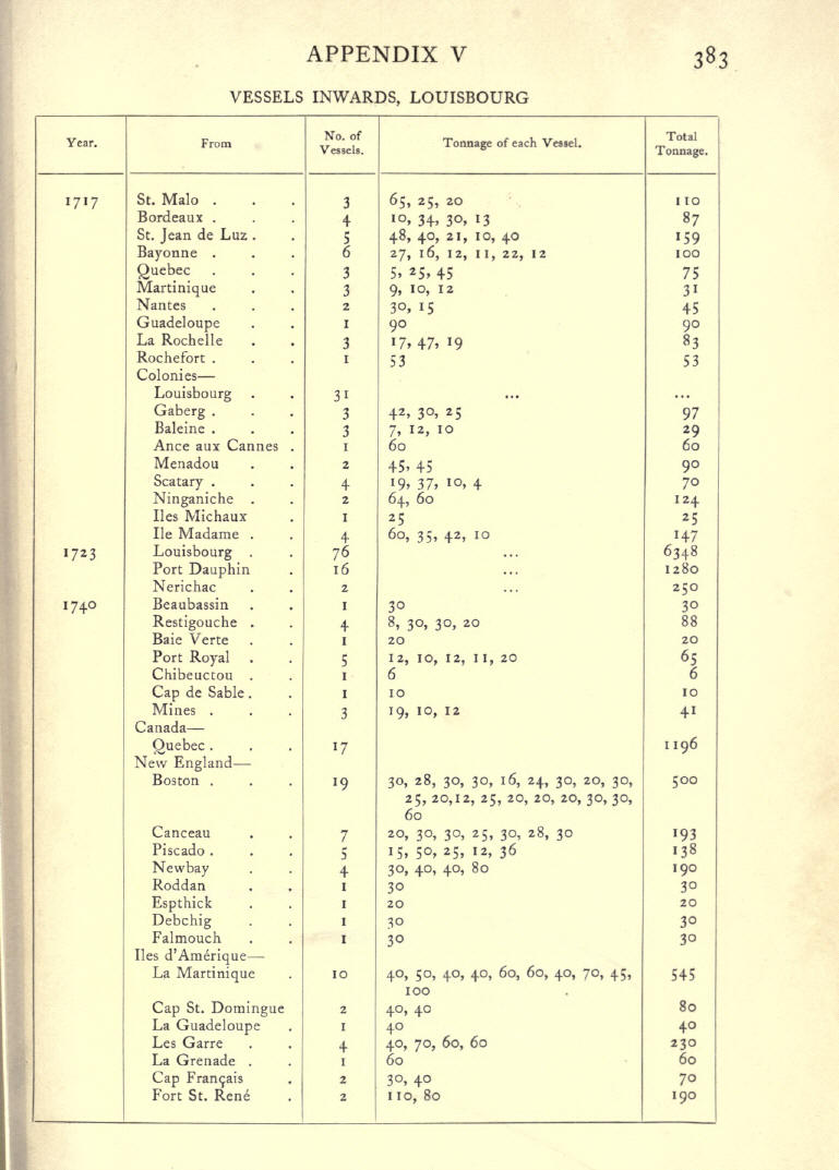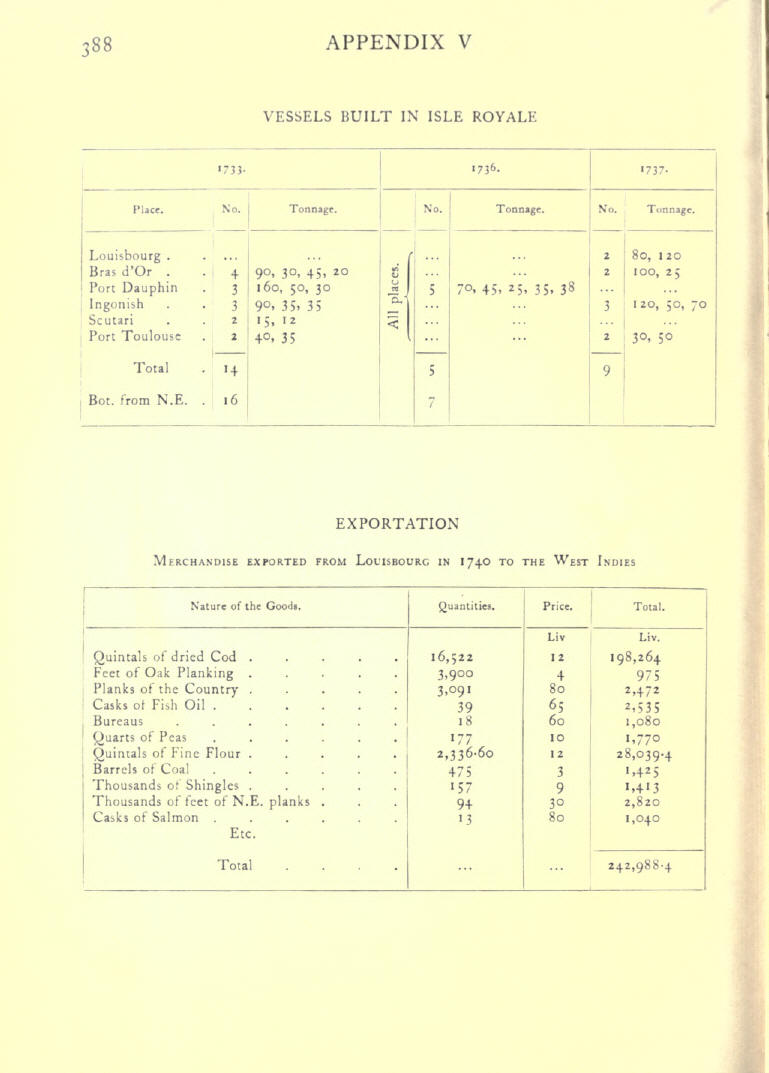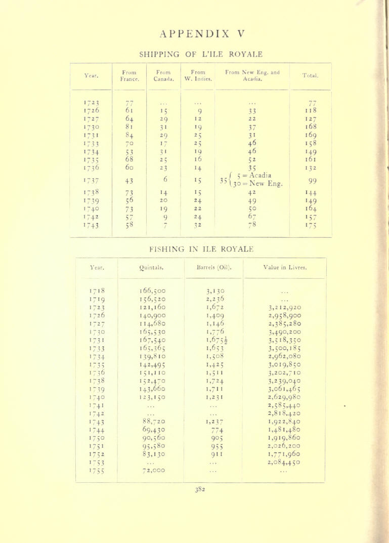 Shipping of Ile Royale / Fishing in Ile Royale / Vessels Inwards Louisbourg / Vessels Outwards Louisbourg / Vessels Bought from the English / Vessels built in Isle Royale / Exportation of Merchandise / Importation of Merchandise