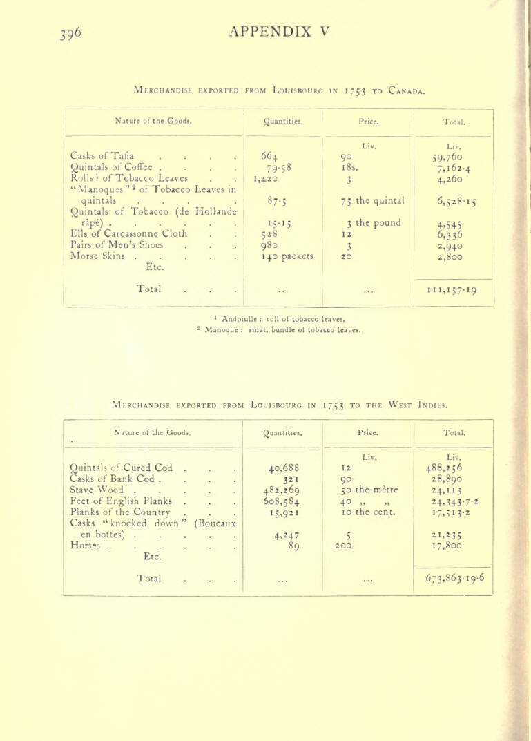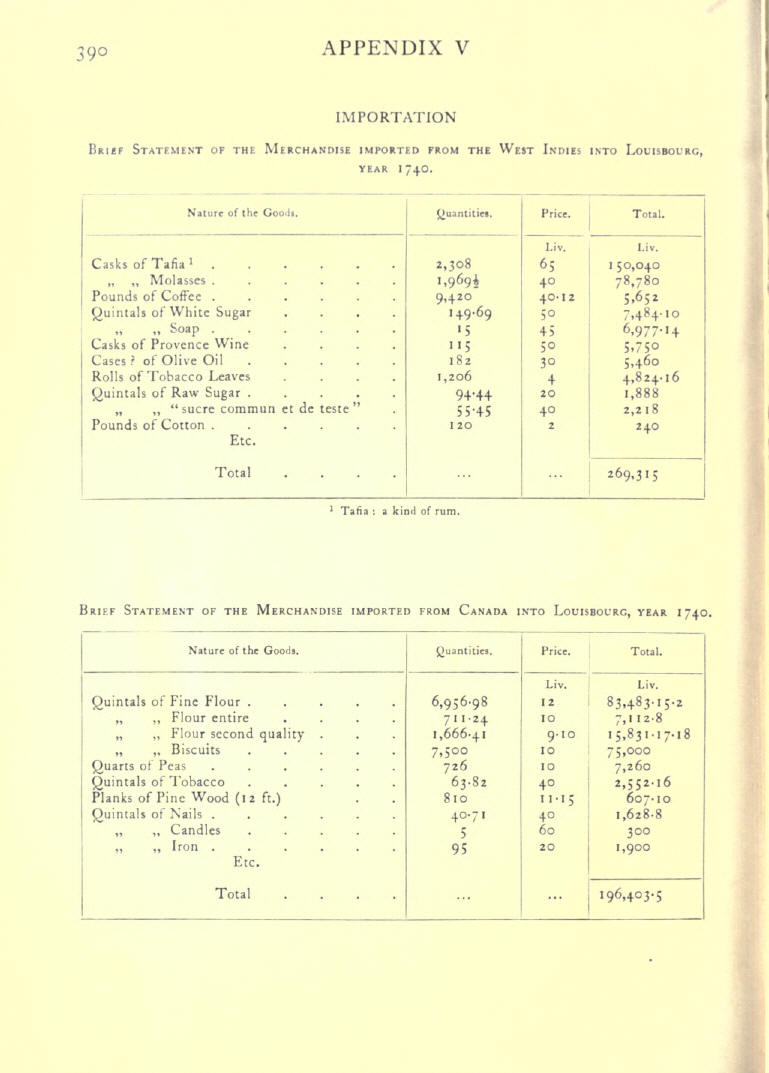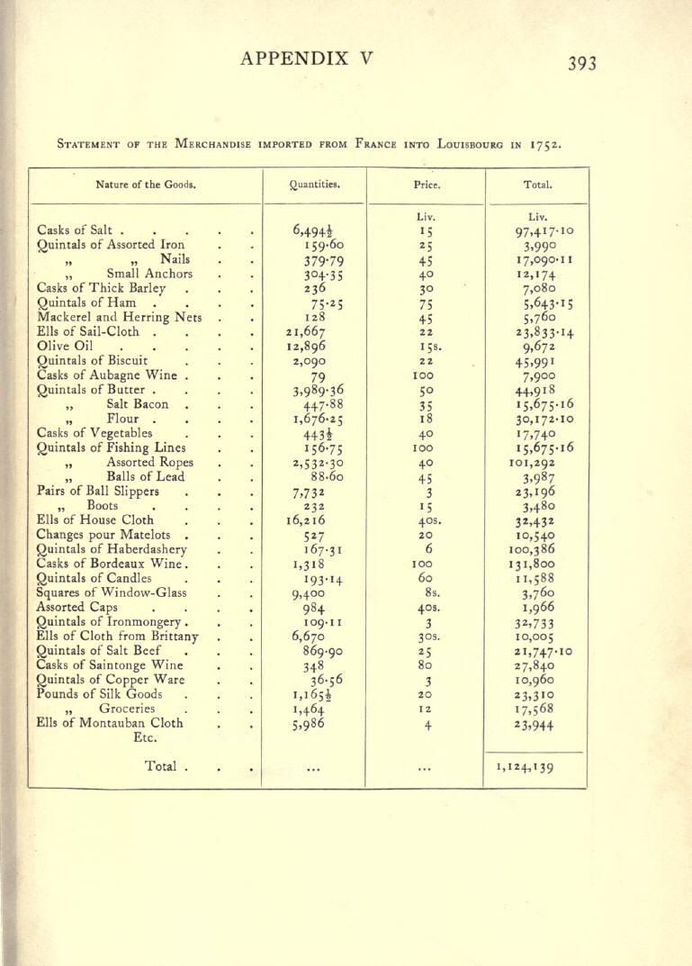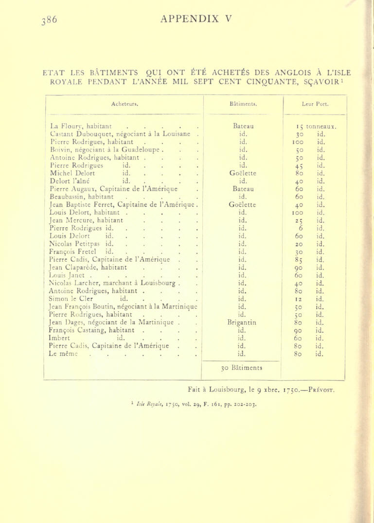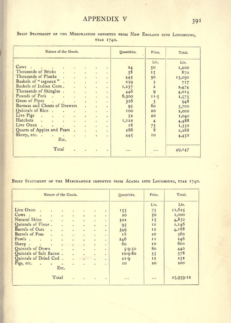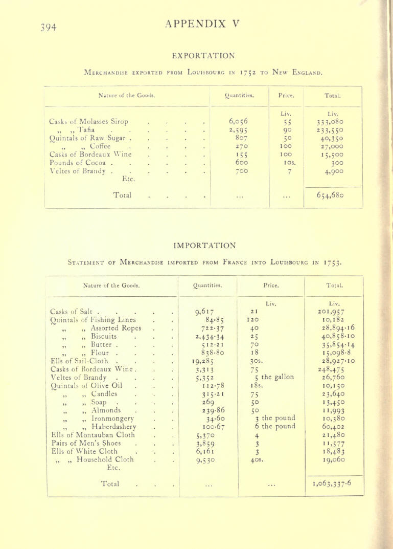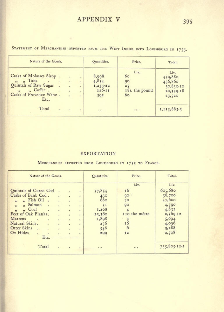 Shipping of Ile Royale / Fishing in Ile Royale / Vessels Inwards Louisbourg / Vessels Outwards Louisbourg / Vessels Bought from the English / Vessels built in Isle Royale / Exportation of Merchandise / Importation of Merchandise