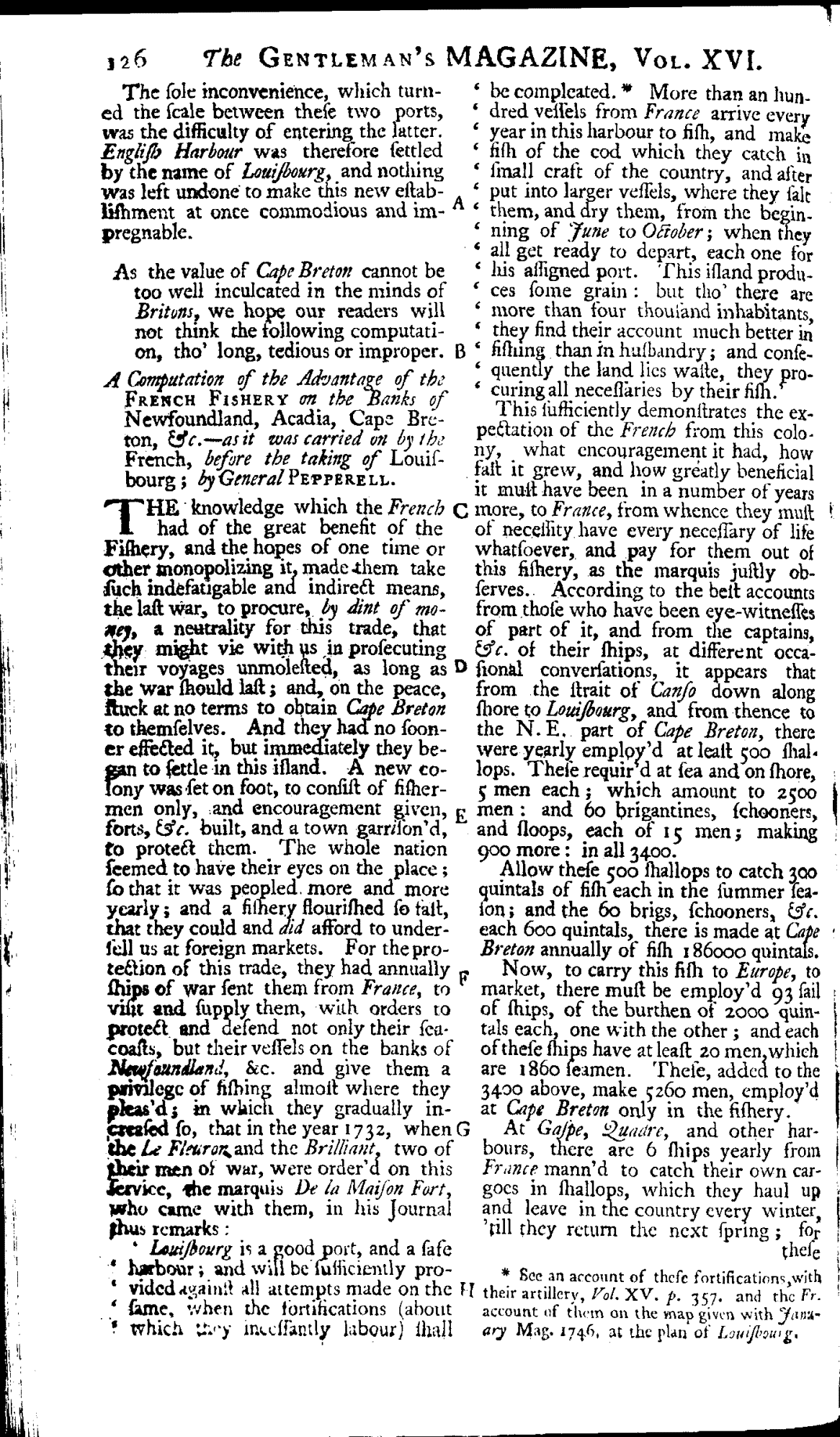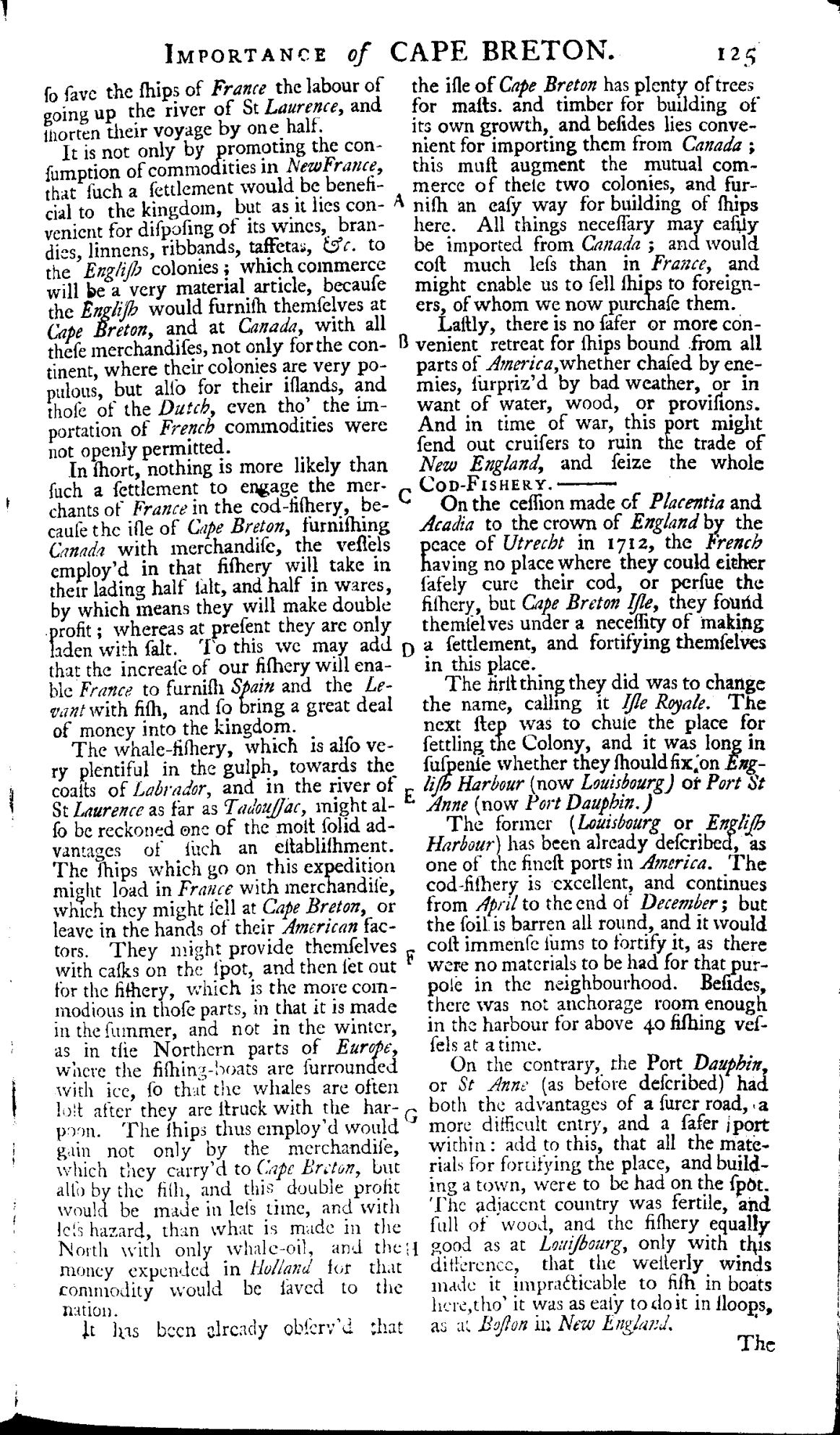 3. That whoever are possess'd of Newfoundland and Acadia, if they have cape breton at the same time, may command all the fishery of North America; But whoever have Newfoundland and Acadia, if they have not cape breton likewise, can pretend only to a share in this fishery, and not the best share neither, if the people of another nation, who are in possession of cape breton, be better protected, and more industrious than the possessors of Newfoundland and Acadia.