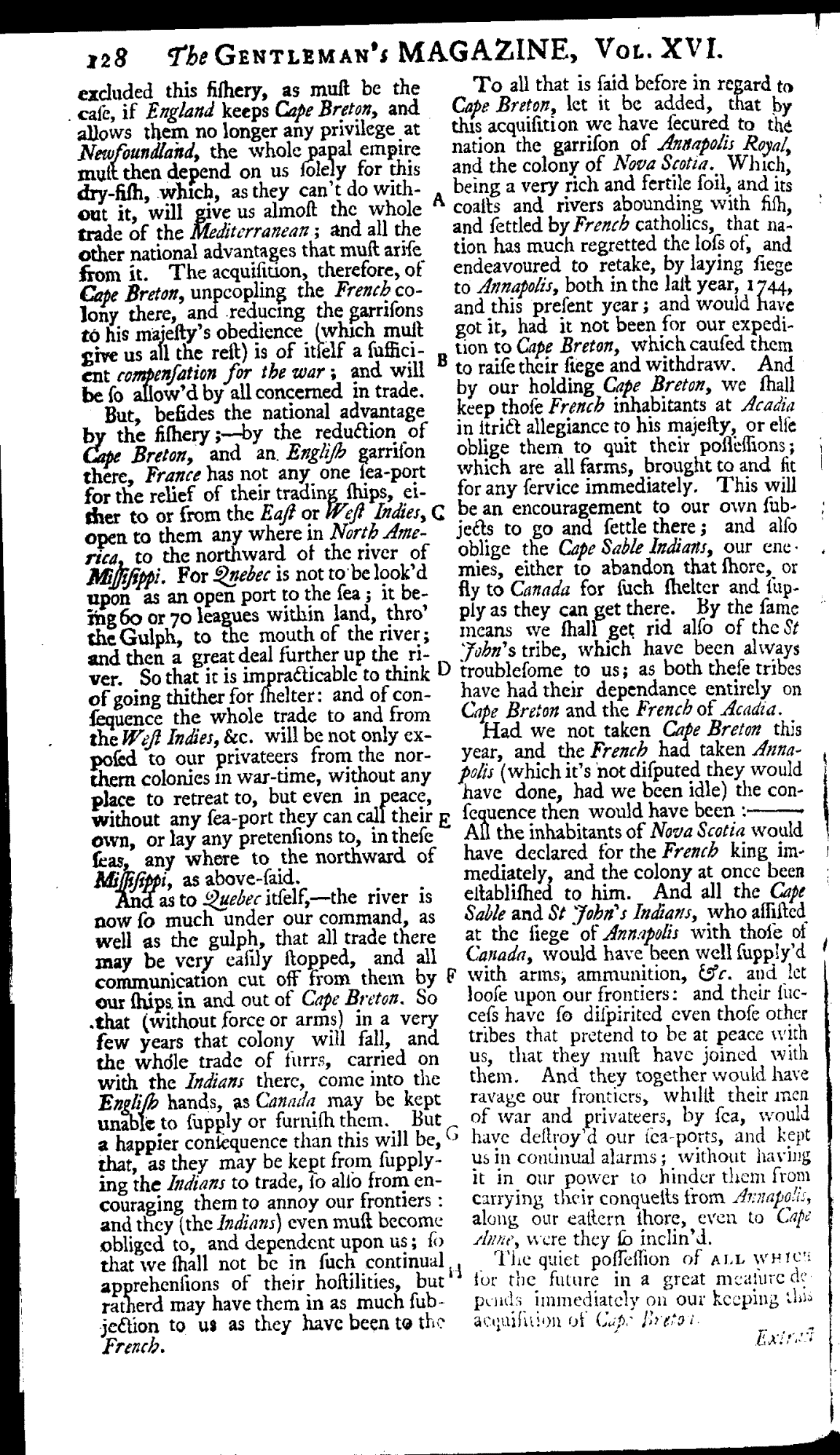 10. That the British empire in America can be no otherwise compleated, nor our trade to New-England, New-York, the Jerseys, Maryland, Virginia, Carolina, and Georgia, be secured, than by keeping possession of Cape-Breton.
