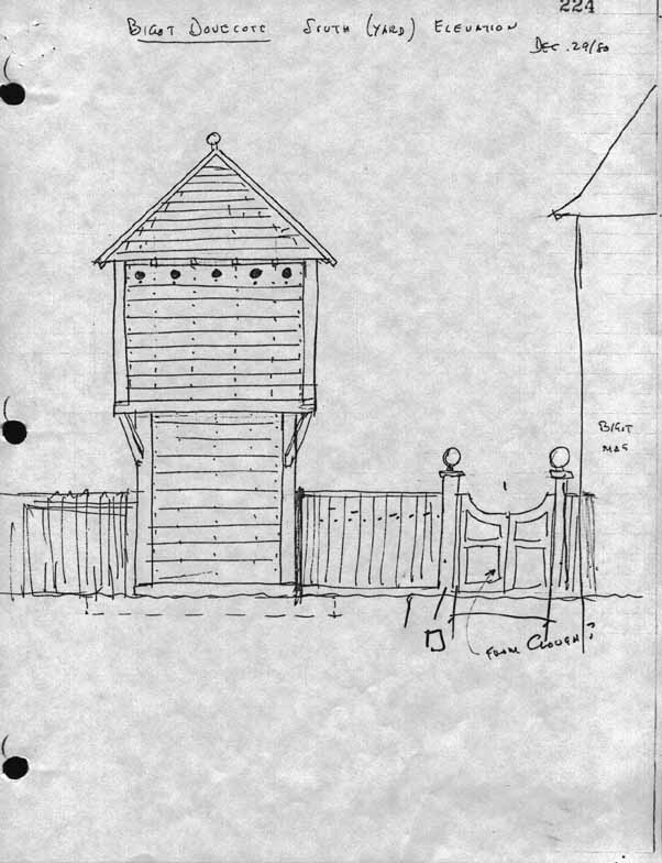 To review proposed preliminary drawings of the Bigot Dove-Cote & yard and well ...