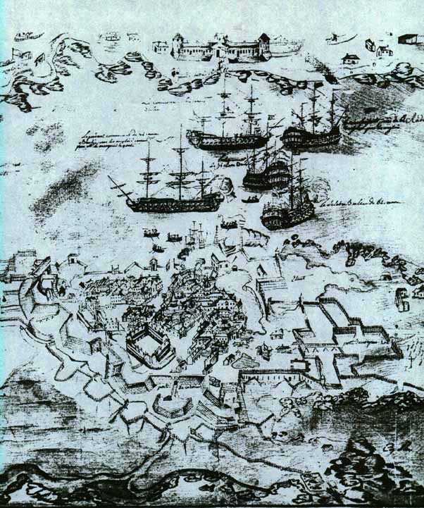 PLAN DU Cap BRETON DIT LOUISBOVRG AVEC SES ENVIRONS PRIES PAR LAMIRALLE BOCKOUME LE 26 jullET 1758