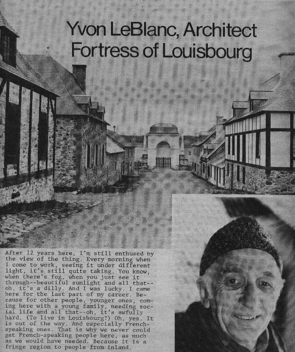 Our thanks to John Johnston, Louisbourg historian, for suggesting we talk with Yvon LeBlanc. And to Eric Krause, Louisbourg historian, who supplied supplementary information and confirmed historical details. While we appreciate his help, responsibility for final historical accuracy rests with the editor.