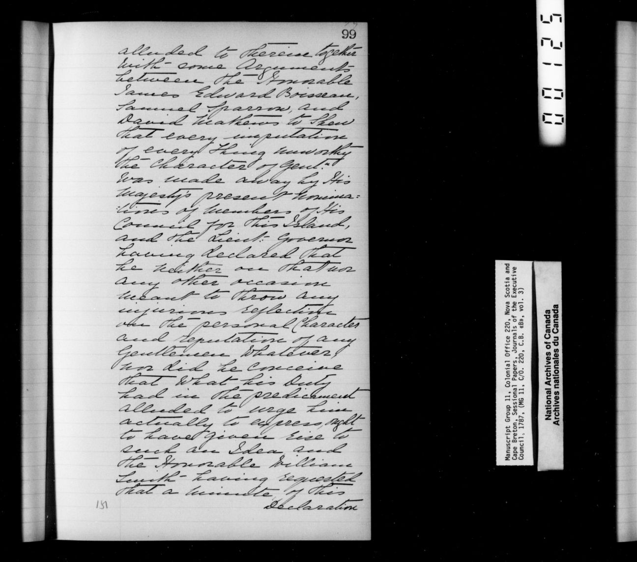 Manuscript Group 11, Colonial Office 220, Nova Scotia and Cape Breton Sessional Papers, Minutes of Executive Council, 1787 (M.G. 11, C.O. 220, C.B. "B", Vol. 3 ff. 97-101